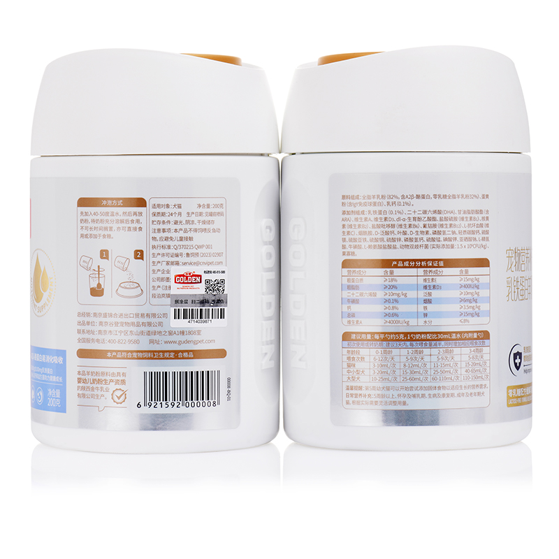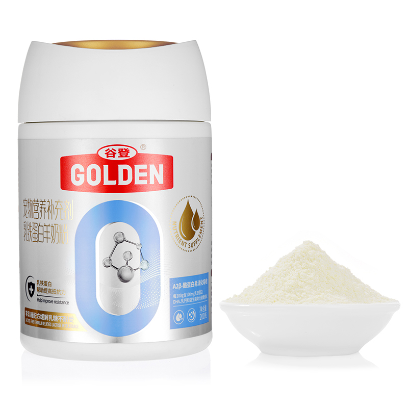 原料组成:全脂羊乳粉(82%,含A2β-酪蛋白,零乳糖全脂羊乳粉32%)、蛋黄粉(含IgY免疫球蛋白)、乳钙(0.1%)。添加剂组成:乳铁蛋白(0.1%)、二十二碳六烯酸(DHA)、甘油脂肪酸酯(含ARA)、维生素A、维生素D3、dl-α-生育酚乙酸酯、盐酸硫胺(维生素B1)、核黄素(维生素B2)、盐酸吡哆醇(维生素B6)、氰钴胺(维生素B12)、L-抗坏血酸(维生素C)、烟酰胺、D-泛酸钙、叶酸、D-生物素、磷酸氢二钠、轻质碳酸钙、硫酸镁、硫酸亚铁、硫酸铜、硫酸锌、磷酸氢钙、硫酸锰、碘酸钾、亚硒酸钠、L-精氨酸、牛磺酸、L-赖氨酸盐酸盐、动物双歧杆菌(实际添加量:1.5ⅹ109CFU/kg)、果寡糖。